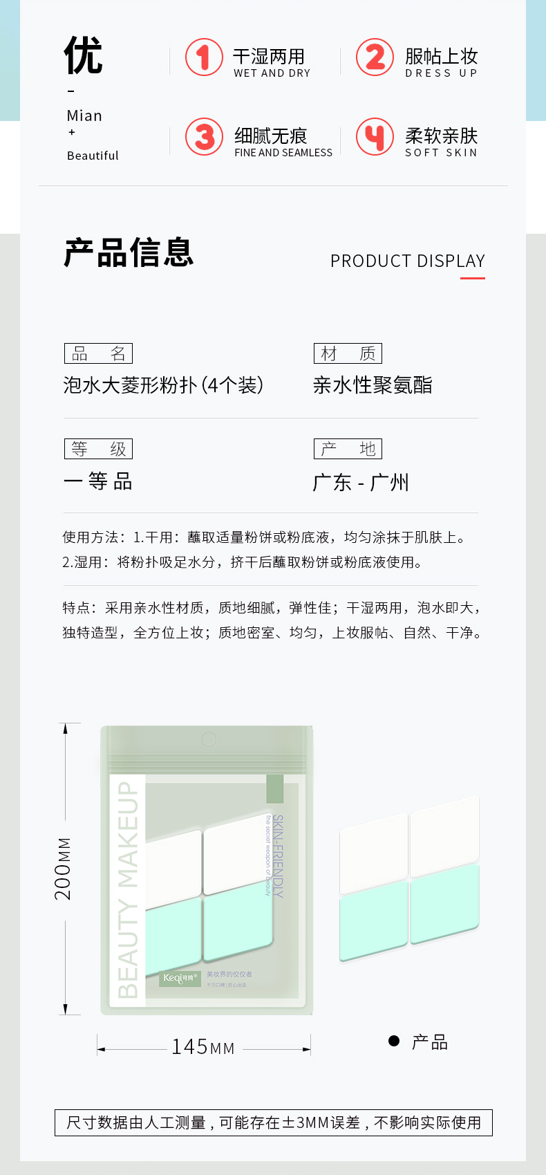 KQ1046 泡水大菱形粉撲(4個裝)
